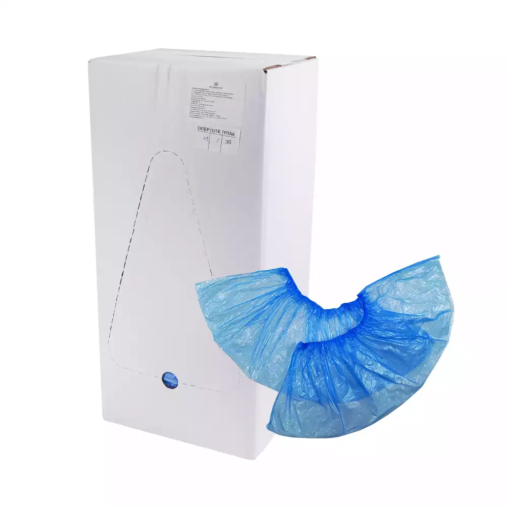 Бахилы "СУПЕР" 80 с двойной резинкой, двойное дно, № 400/2400 (ЕВРОБЛОК) бело-синий 80мкм, Медсервис Плюс (РОССИЯ), 400 пар
