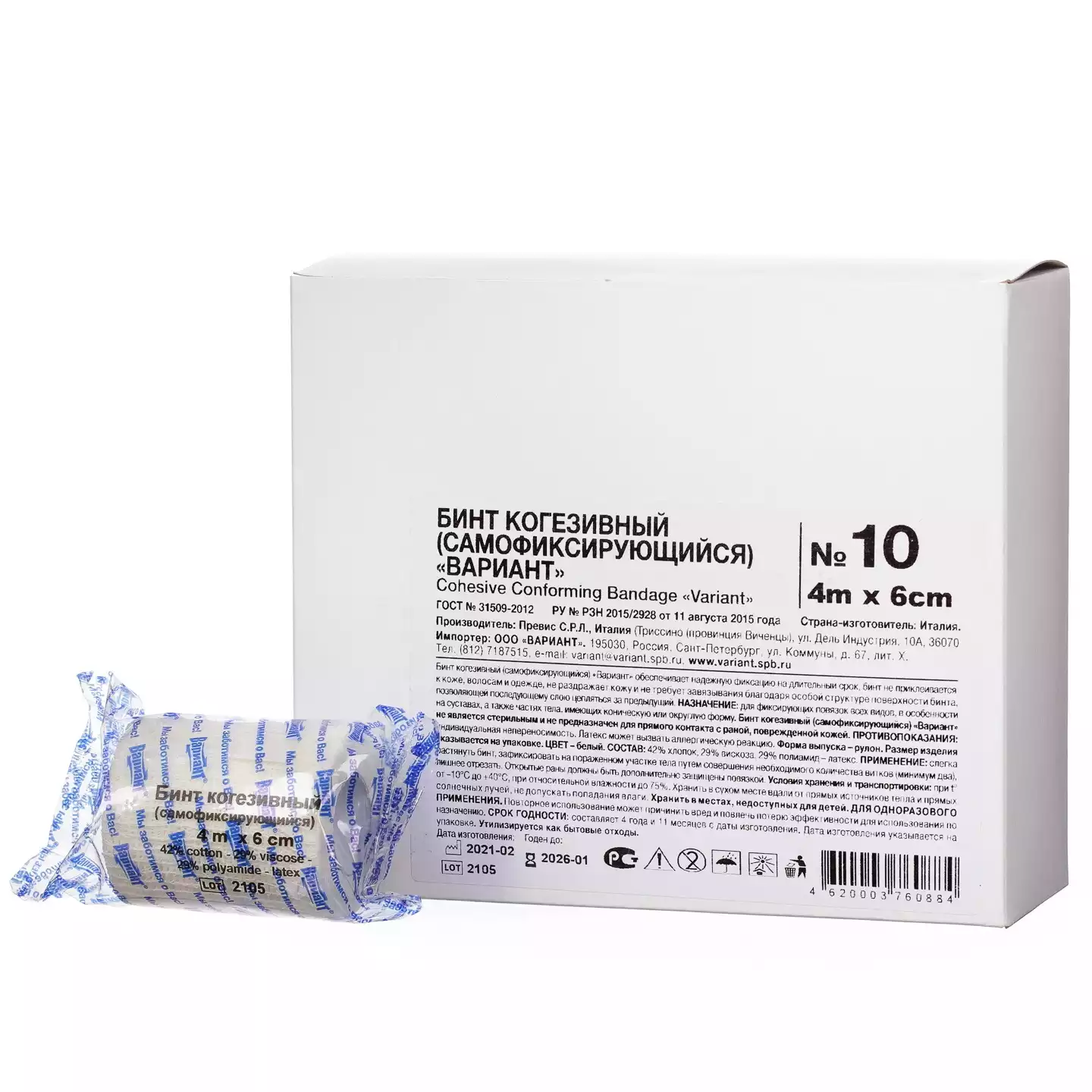 Бинт эластичный "Вариант" cамофиксирующийся когезивный, размер 10м*6см, упаковка 10шт, цвет белый, Превис С.Р.Л. (Италия) (ИТАЛИЯ)