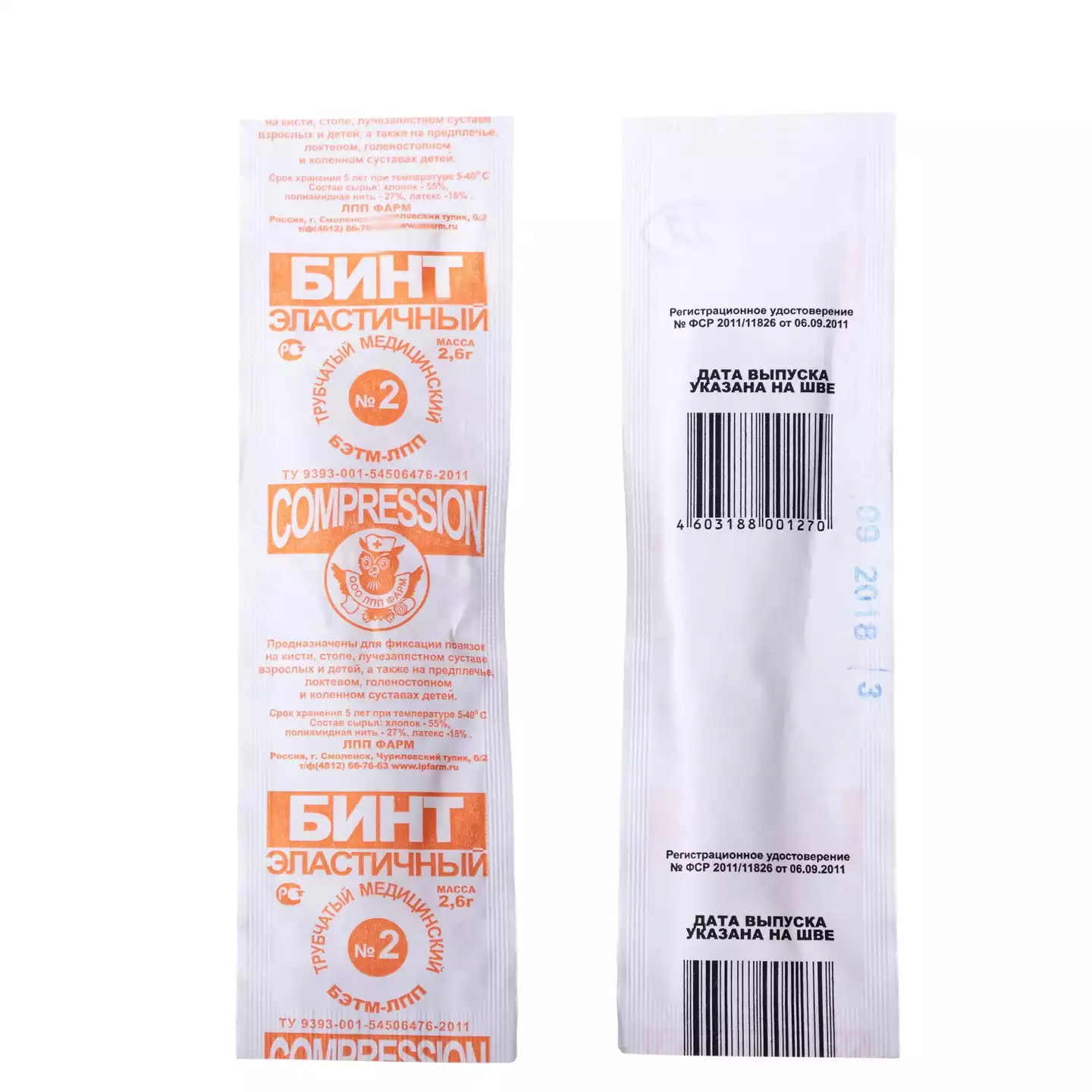 Бинт БЭТМ-ЛПП эластичный, размер №2 (20мм*20см), трубчатый, фасованный 2,6г, Фарм ЛПП (РОССИЯ)
