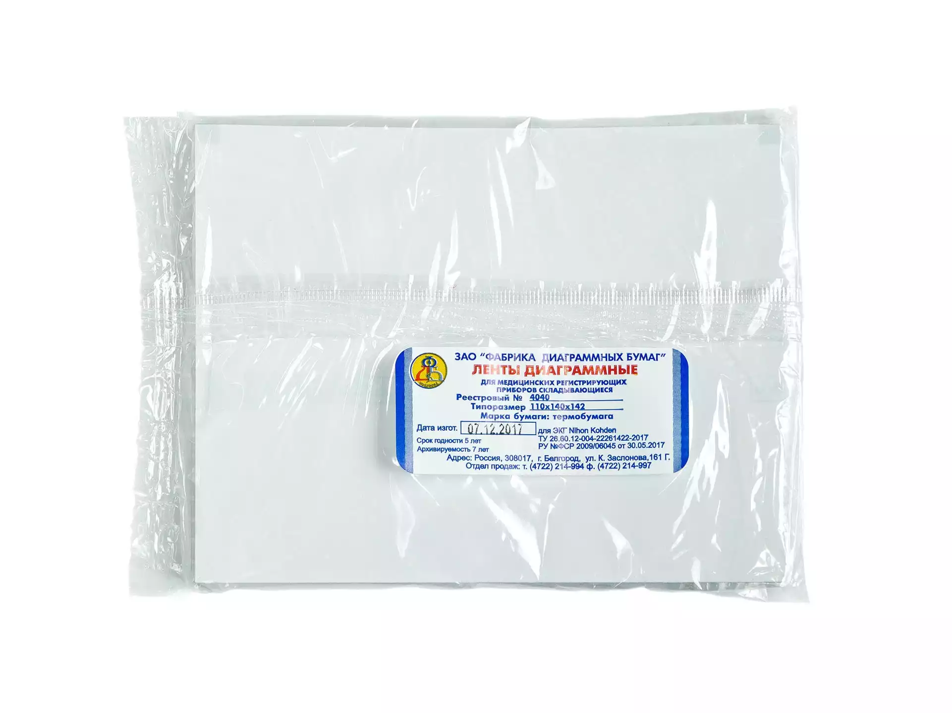 Бумага для ЭКГ (110*140*142) М, пачка складывающаяся, без сетки, Фабрика диаграммных бумаг (РОССИЯ)