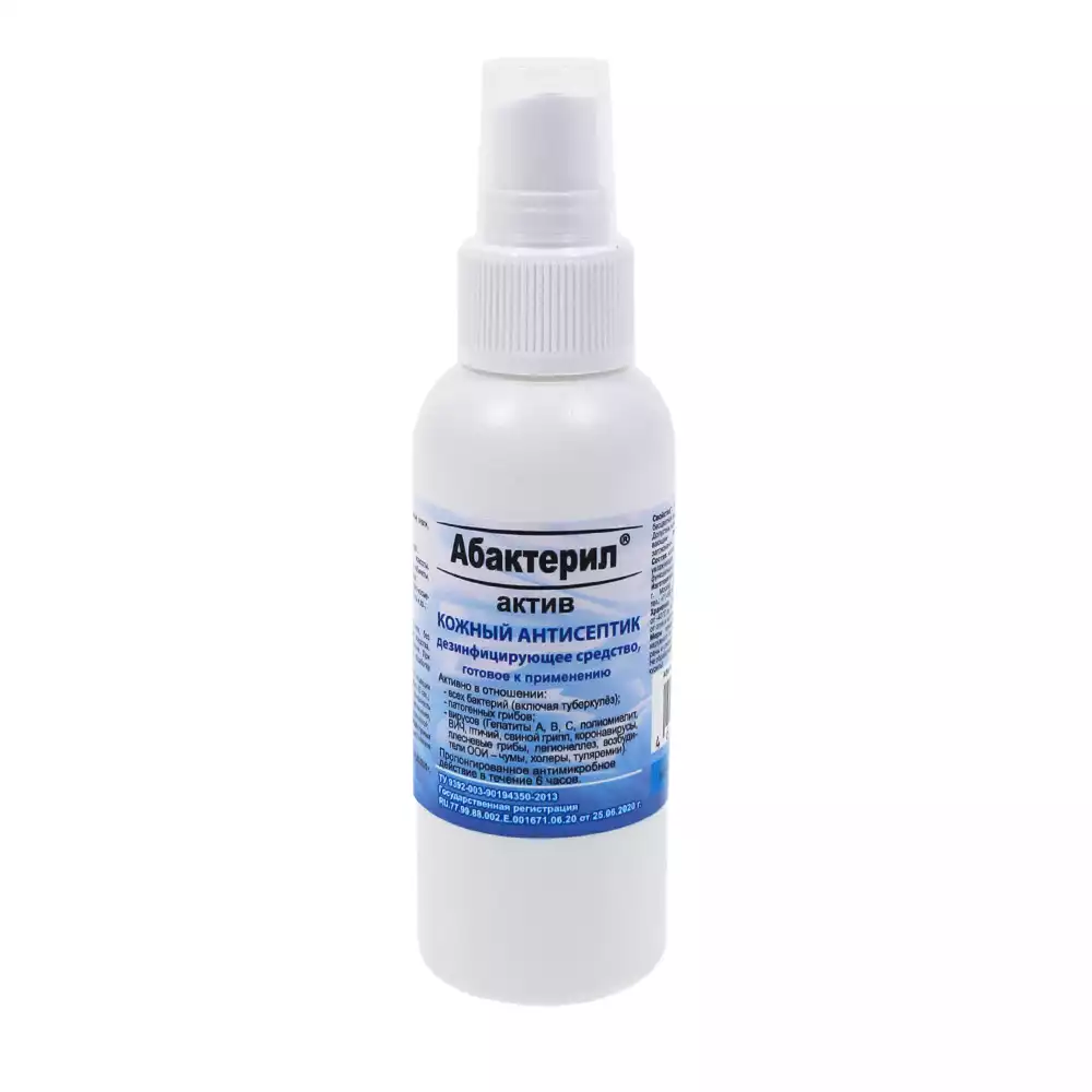 Абактерил - АКТИВ 100мл, кожный антисептик и дезинфектант для поверхностей, спрей, изопропиловый спирт – 64,0%, Рудез (РОССИЯ)