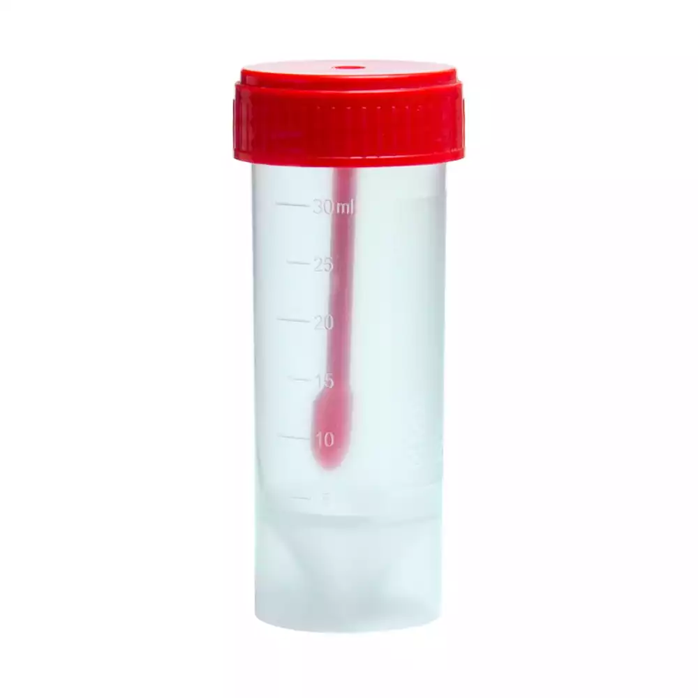 Контейнер 30мл, для взятия биоматериала, нестерильный, с завинчающейся крышкой, со шпателем, МедКом НПФ (РОССИЯ)