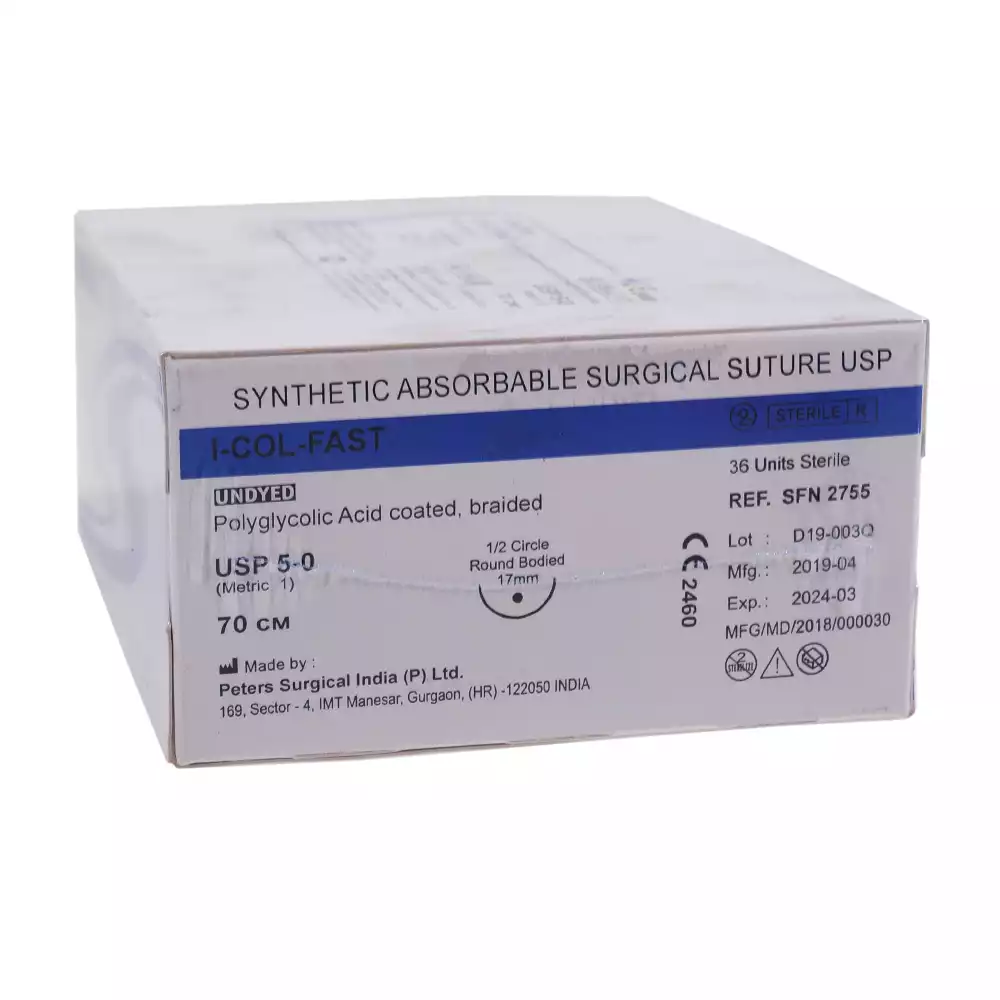 Ай- кол 5/0 (1), длина нити 70см, игла 1/2 круглая колющая 17мм, упаковка 36шт, SFN2755, Peters Surgical (ИНДИЯ)