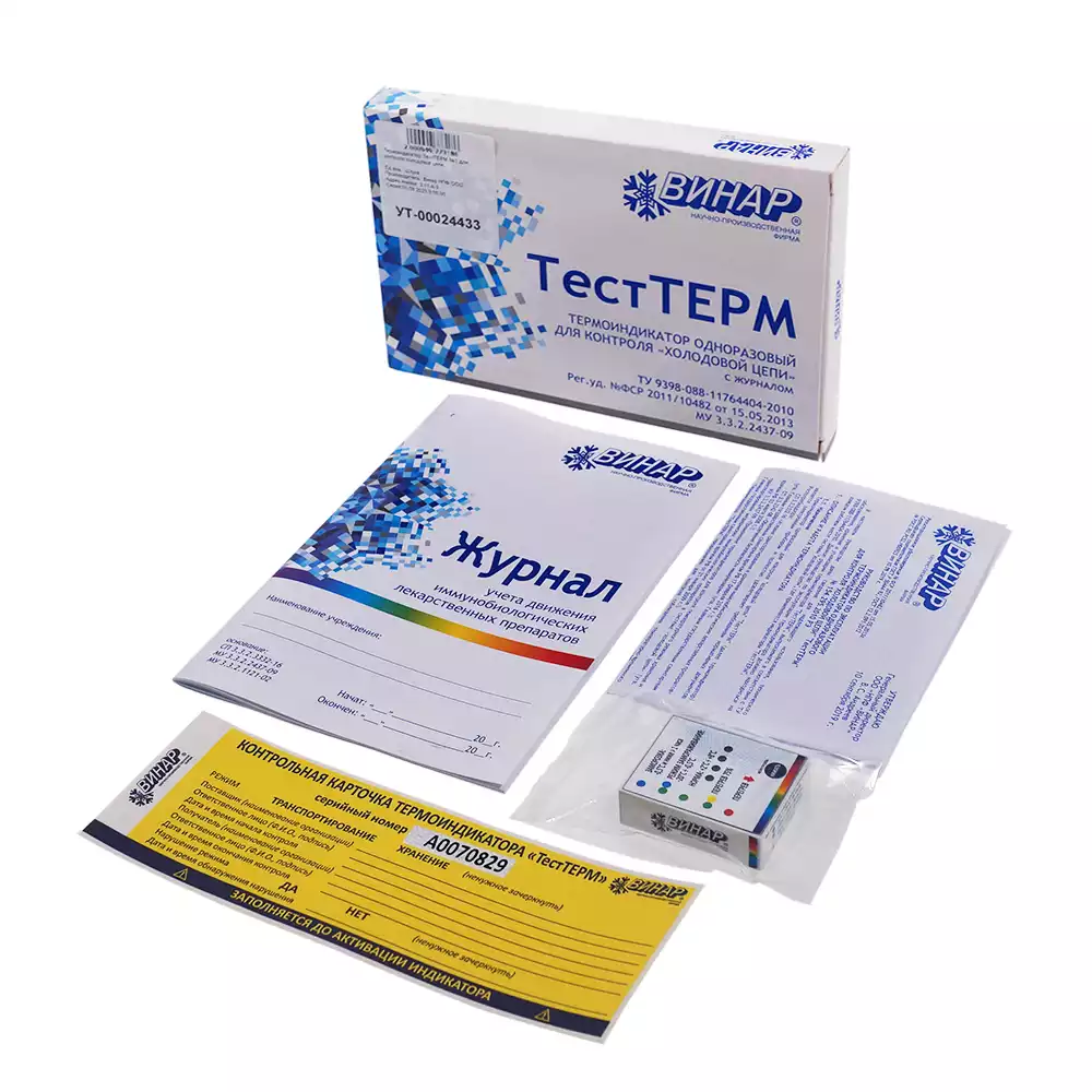 Термоиндикатор контроля Холодовой цепи ТестТЕРМ №1, режим работы от -20 °С до +80 °С, Винар НПФ (РОССИЯ)