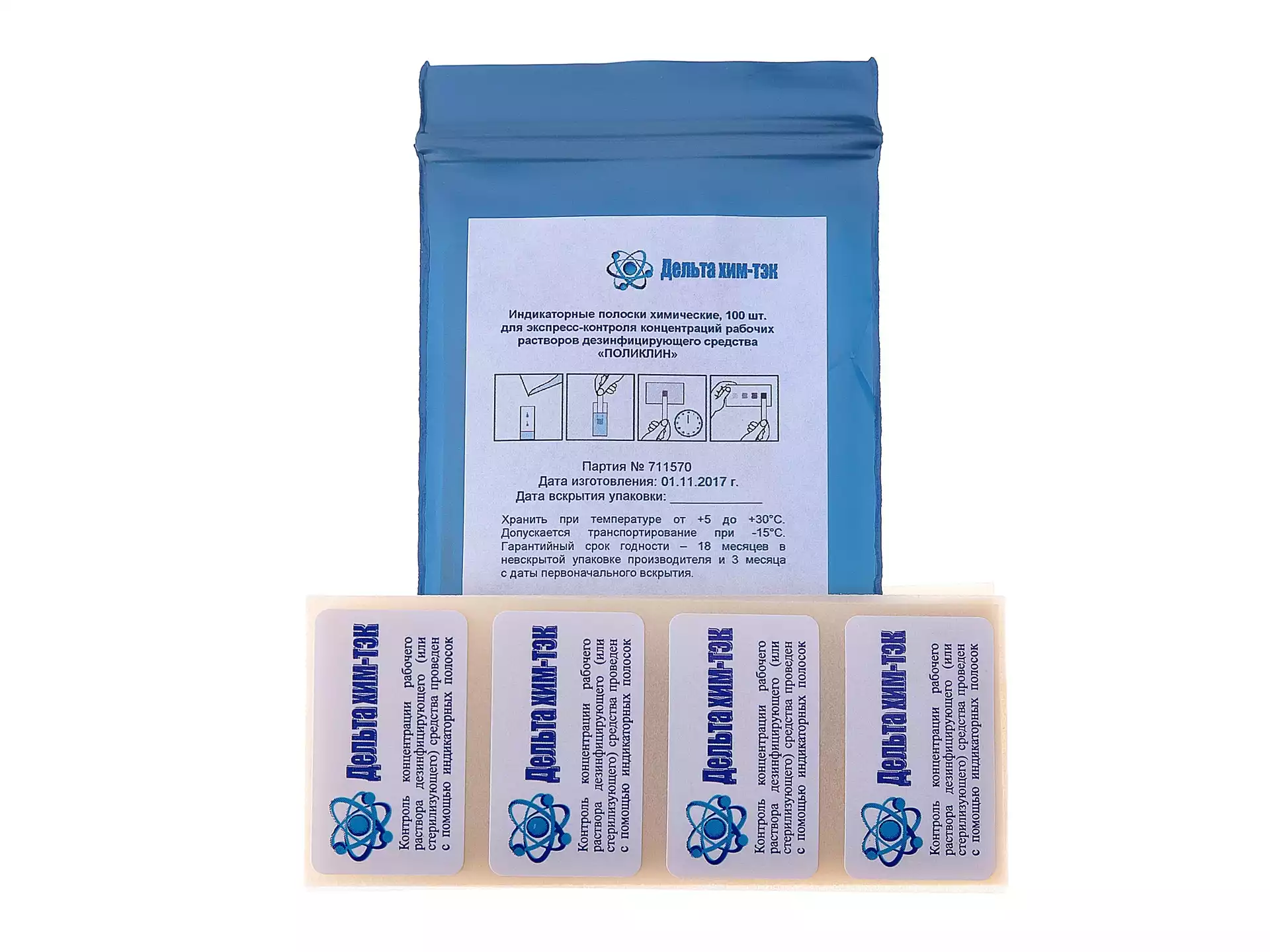 Индикаторные полоски ДХЦ на хлорные таблетки, упаковка 100шт, Дельта хим-тэк (РОССИЯ)