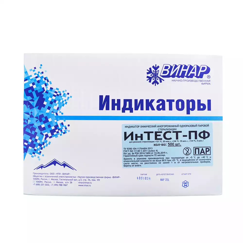 Индикатор стерилизации ФАРМАТЕСТ 100/10, класс 4, упаковка 500шт, без журнала, Винар НПФ (РОССИЯ)