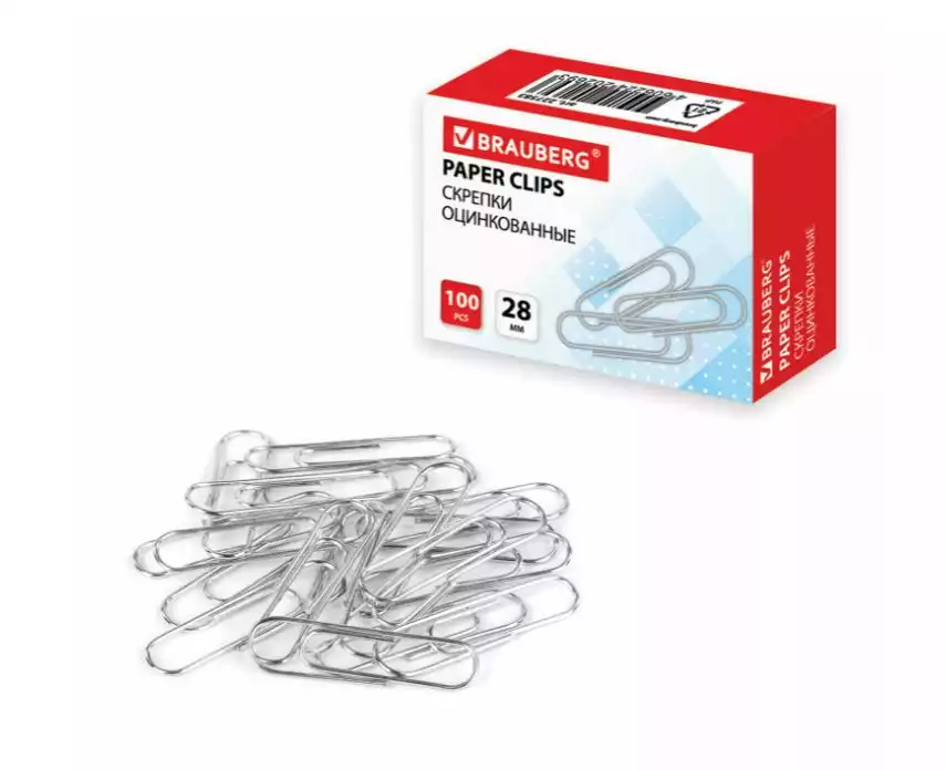 Скрепки BRAUBERG, 28 мм, оцинкованные, 100 шт., в картонной коробке, NINGBO S&L TRADING CO., LTD