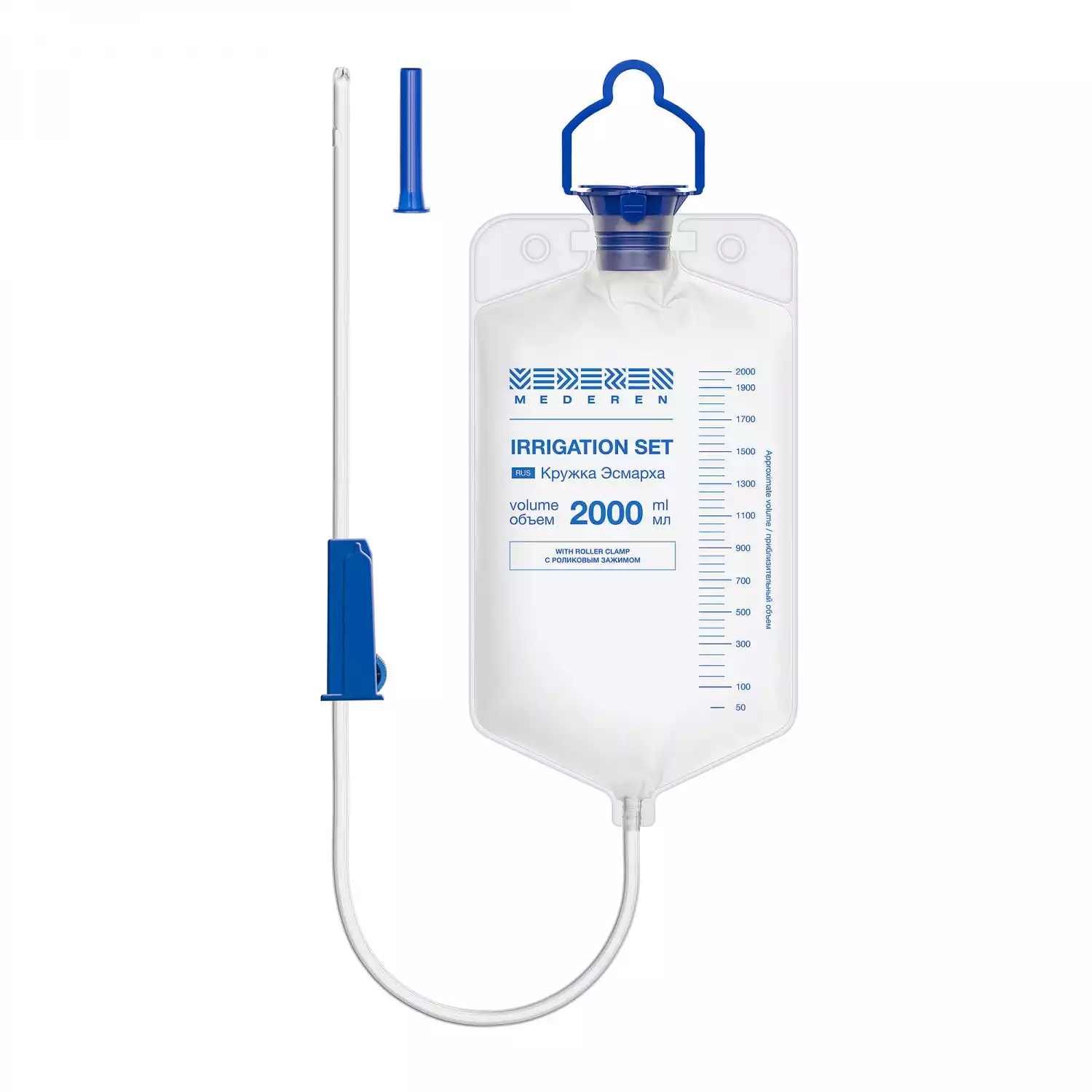 Стерильные кружки Эсмарха одноразового использования - это медицинские инструменты, используемые в лечебных учреждениях для различных процедур. Они представляют собой гибкий контейнер с крышкой и краном для регулирования потока жидкости.