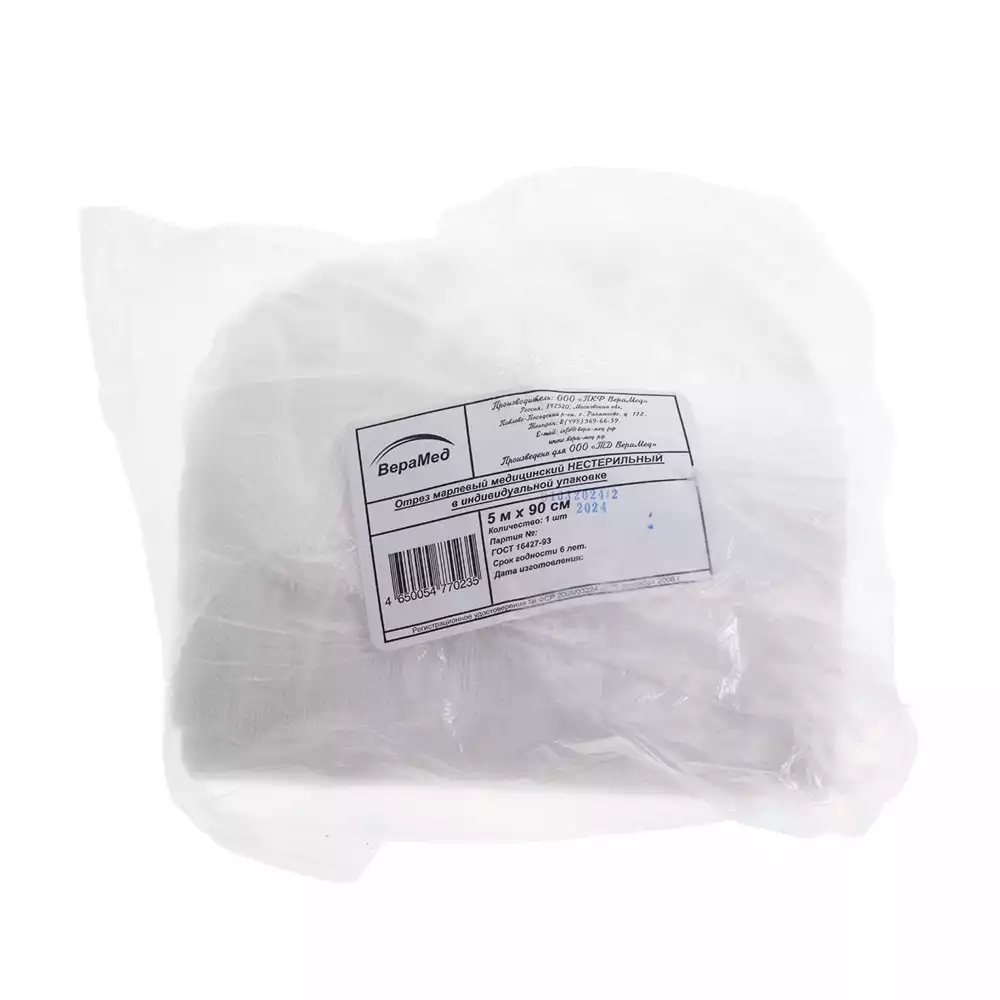 Марля медицинская, ширина 90см, отрез 5м, плотность 36г/м2, Верамед (РОССИЯ)