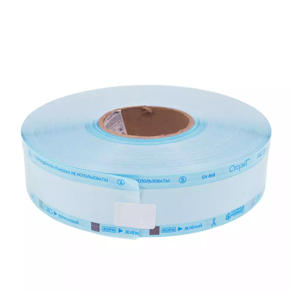 Рулоны для стерилизации изготавливаются из двухслойного комбинированного материала высокого качества. Одна сторона представляет собой плотную медицинскую бумагу, которая может быть выполнена из крафт-бумаги натурального цвета или специальной медицинской бумаги голубого оттенка.