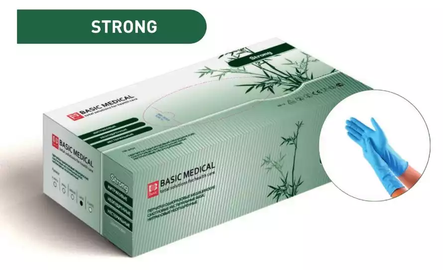 Перчатки Basic Strong, размер M, нитриловые,повышенной прочности: вес 13,0 г/пара, неопудренные, текстурированные на пальцах, удлиненная манжета, цвет белый, нестерильные, упаковка 50 пар, Intco Industries Co Ltd (КИТАЙ)