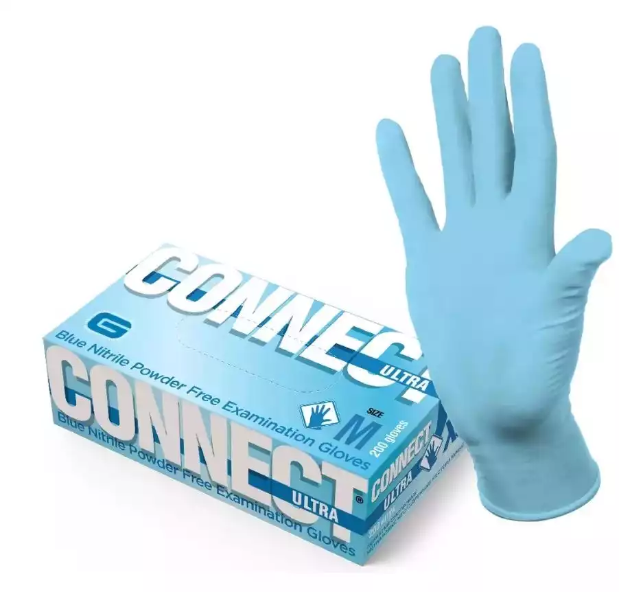 Перчатки медицинские смотровые нитриловые неопудренные нестерильные прочные CONNECT ULTRA (INTCO) р.M цвет голубой упаковка 100 пар, Shandong Intco Medical Products Co.