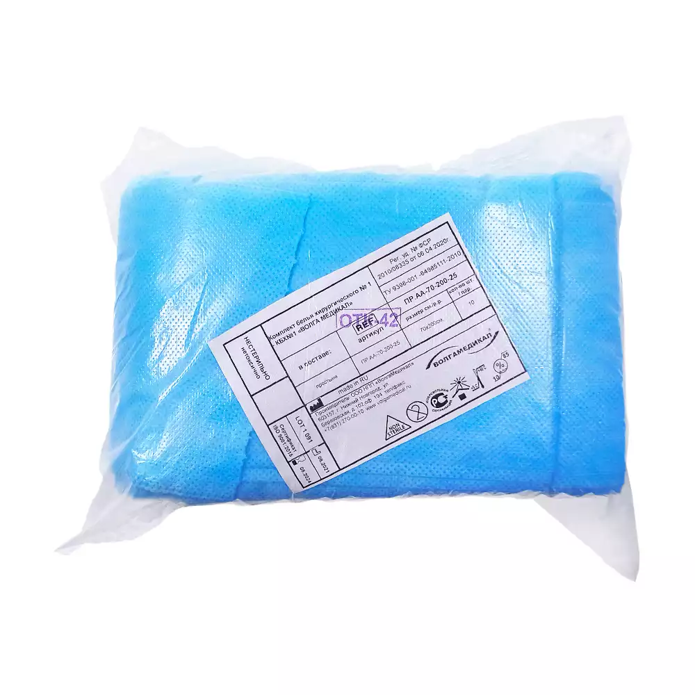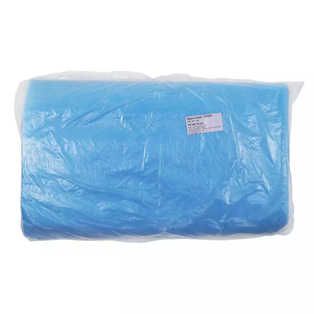 Простыня 70*80см, материал Спанбонд 20г/м2, нестерильная, цвет голубой, с РУ, Волга Медикал НПП (РОССИЯ)