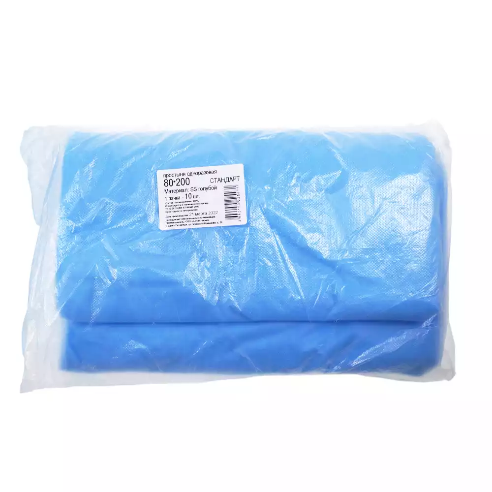 Простыня 80*200см, материал Спанбонд 20г/м2, нестерильная, голубая, групповое сложение, Белая река (РОССИЯ)