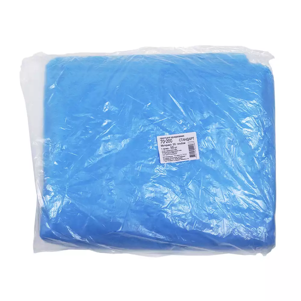 Простыня 70*200см, материал Спанбонд 20/м2, нестерильная, голубая, Волга Медикал НПП (РОССИЯ)