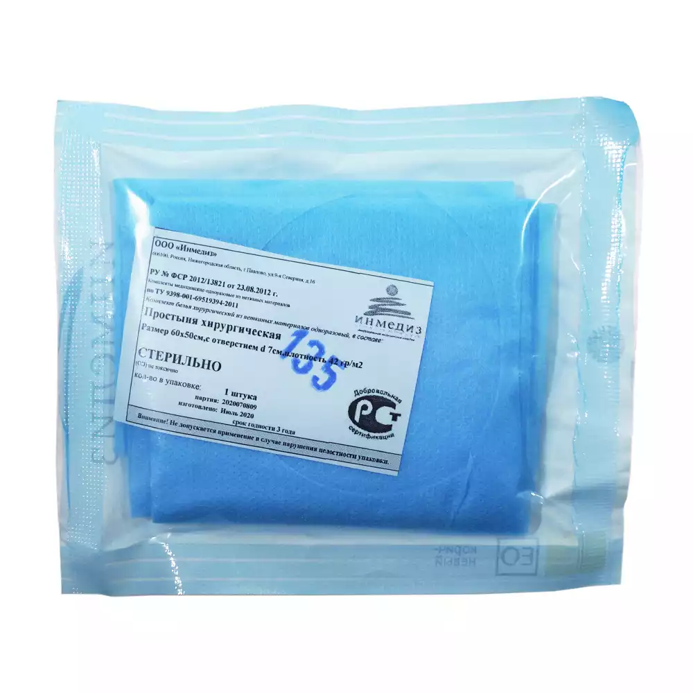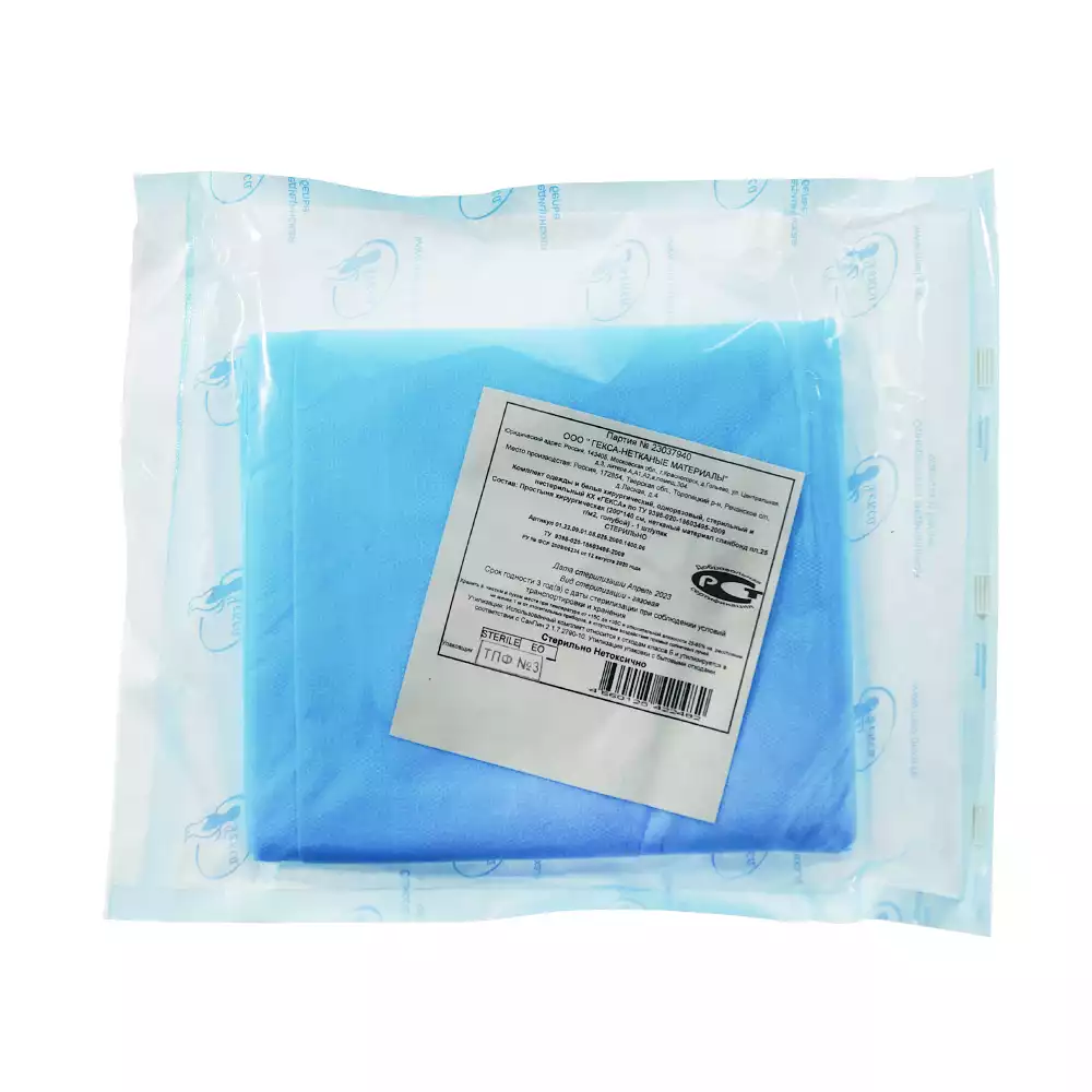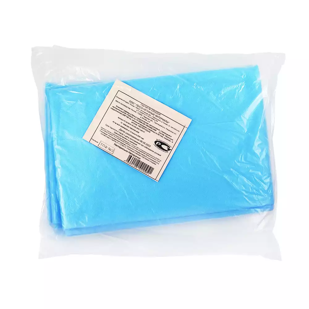 Простыня 70х80см, СМС 40г/м2 + ламинат, хирургическая, стерильная, голубая, Волга Медикал НПП (РОССИЯ)