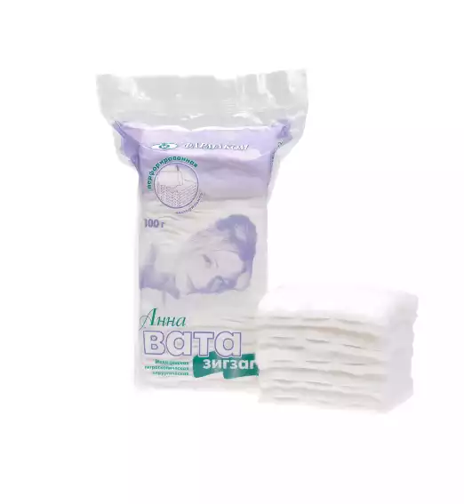 Вата медицинская хирургическая "зиг-заг" 100 грООО "Фармаком" (РОССИЯ)