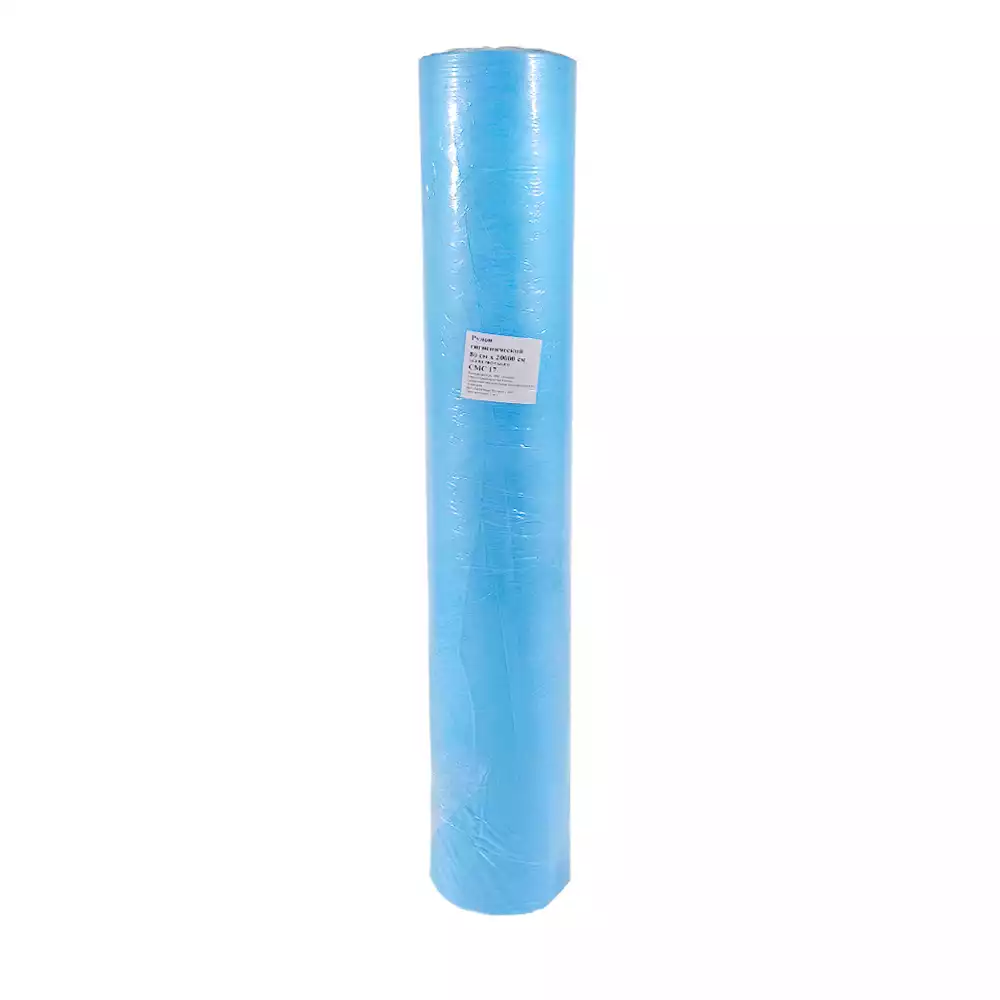 Рулон гигиенический, размер 80см*200м, материал СМС 20г/м2, без перфорации, голубой, Инмедиз (РОССИЯ)