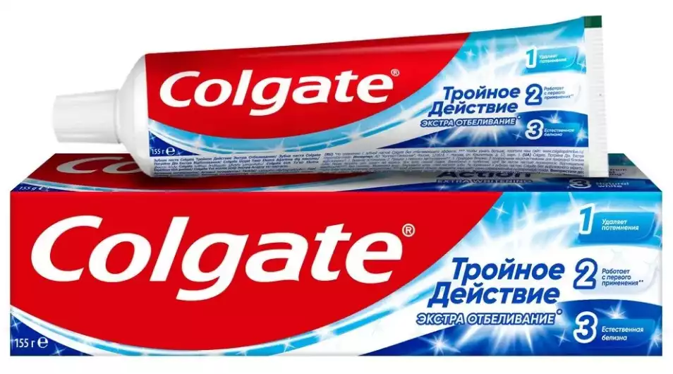 Паста зубная Колгейт 100 мл Тройное действие Экстра отбеливание, Colgate-Palmolive (China) Co., Ltd.